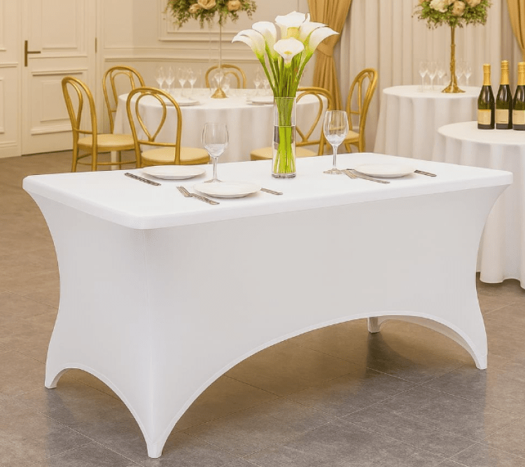 Enhance the allure of your event tables with Black or White Spandex Banquet Tablecloth. Ideal for weddings, banquets, and special occasions, this tablecloth combines elegance with practicality. Elevate your table settings with this pristine tablecloth, creating a sophisticated and timeless ambiance that complements any decor.