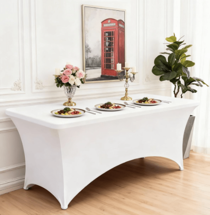 Enhance the allure of your event tables with Black or White Spandex Banquet Tablecloth. Ideal for weddings, banquets, and special occasions, this tablecloth combines elegance with practicality. Elevate your table settings with this pristine tablecloth, creating a sophisticated and timeless ambiance that complements any decor.