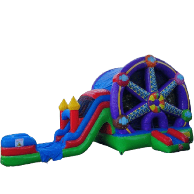 Create a carnival-like atmosphere at your events with the Ferris Wheel Inflatable Water Slide Bounce House Combo. This thrilling and versatile inflatable promises hours of fun, combining the excitement of a water slide with the bounciness of a house. Perfect for birthdays, summer parties, and outdoor celebrations, this combo adds a whimsical touch to your event.
